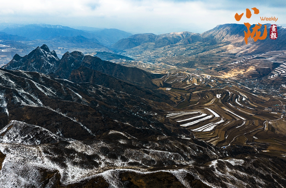 雪落在陡峭的崖壁上,落在圓潤的山頂上,落在深邃的溝壑里。紅的更紅,白的更白,仿佛是大地披上了婚紗,要在春天里完成一場盛大的婚禮。