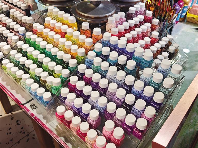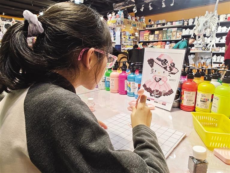 “我們主要做拼豆、銀飾DIY和陶藝,也有石膏彩繪、串珠、奶油膠這些項目,基本上當下流行的手工都能體驗到。”店內(nèi)工作人員告訴記者,一站式、多樣化的體驗,更符合現(xiàn)在消費者的需求,不用跑多家店,就能玩遍多種玩法。