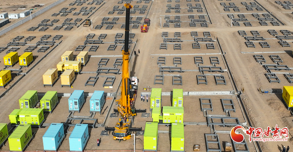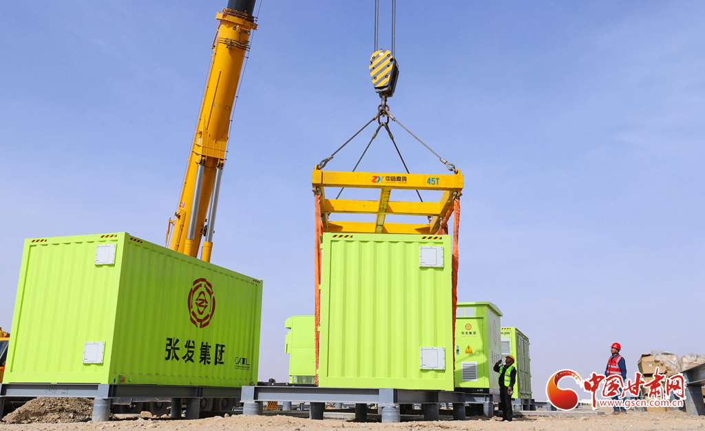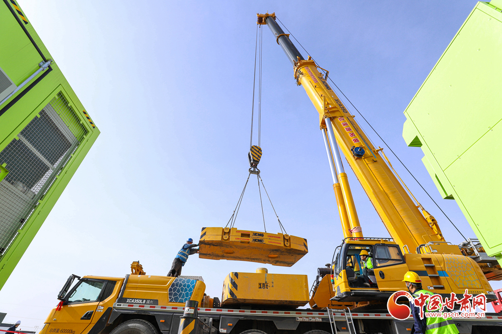 3月19日,張掖市山丹縣東樂(lè)灘上,工程建設(shè)者們正在進(jìn)行儲(chǔ)能電站項(xiàng)目電池倉(cāng)吊裝前的準(zhǔn)備。
