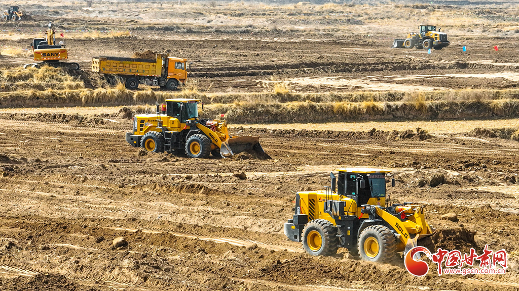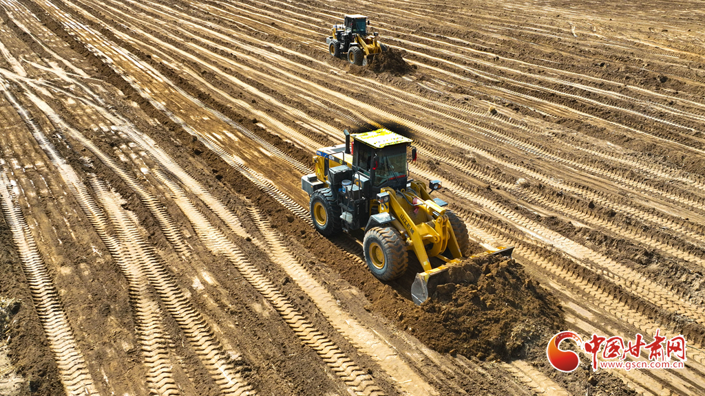 3月20日,在張掖市民樂縣新天鎮(zhèn)李寨村高標準農(nóng)田建設(shè)現(xiàn)場,推土機、平地機在田野間往來穿梭,將高低不平、細碎零散的“小塊田”逐步整合為連片“大田”。