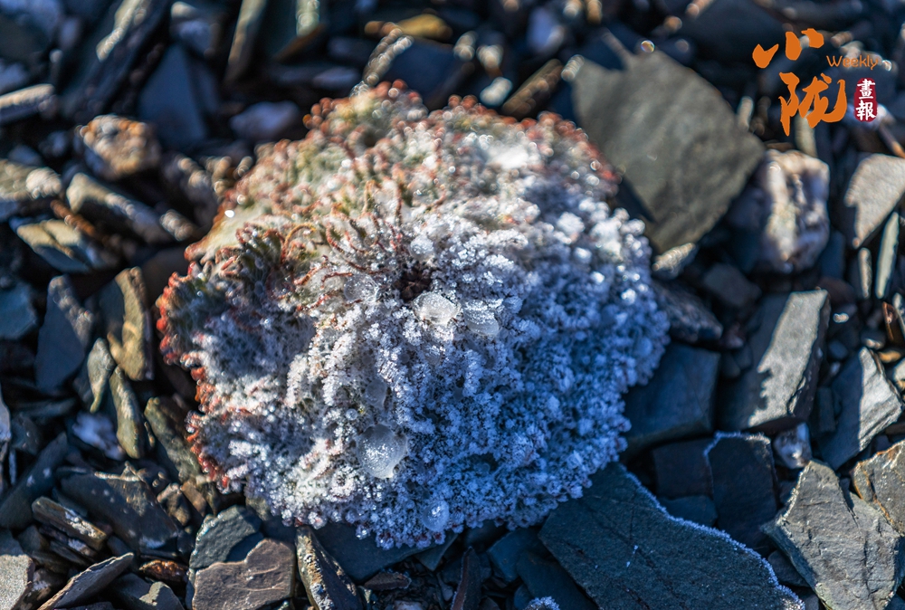 抱莖葶藶,屬于十字花科葶藶屬的墊狀高山植物。它呈緊湊的團塊狀,葉片密集,表面覆有白色絨毛,頂端開有細碎的黃色小花,生長在碎石環(huán)境中,這種形態(tài)能幫助它適應(yīng)高海拔的低溫、強風(fēng)與強紫外線環(huán)境,減少水分流失。