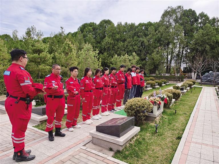 除了應(yīng)急保障,救援隊(duì)還主動(dòng)參與到植樹(shù)活動(dòng)中。他們利用空閑時(shí)間,和志愿者一起揮鍬挖坑、扶苗培土,動(dòng)作熟練且充滿干勁。隊(duì)長(zhǎng)張建欣表示:“我們不僅是來(lái)保障安全的,更是來(lái)貢獻(xiàn)一份力量的。能親手為英烈種下一棵樹(shù),是我們的榮幸。”