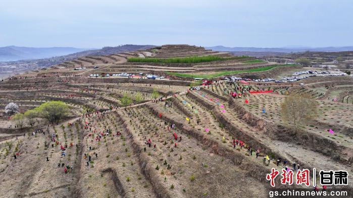 4月10日,渭源縣廣大干部群眾在路園鎮(zhèn)植樹點(diǎn)開展春季義務(wù)植樹,為家鄉(xiāng)增添一抹新綠。李瓏 攝