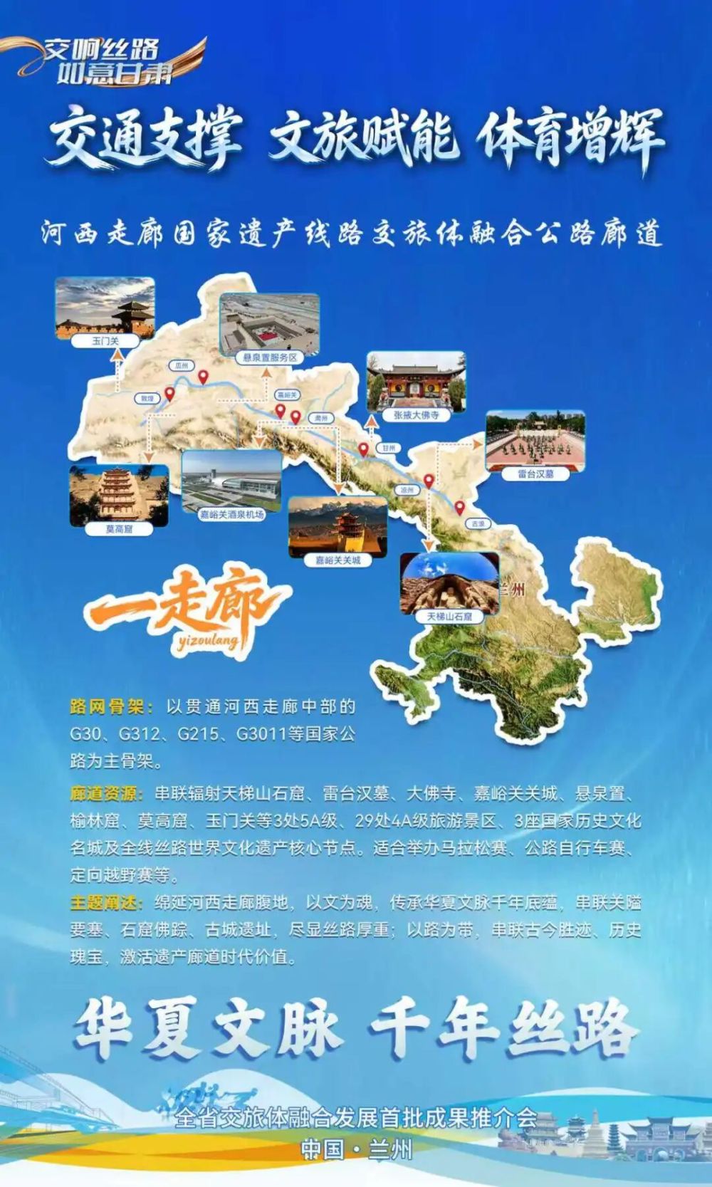 以“華夏文脈 千年絲路”為主題,打造河西走廊國家遺產線路交旅體融合廊道,即“一走廊廊道”。